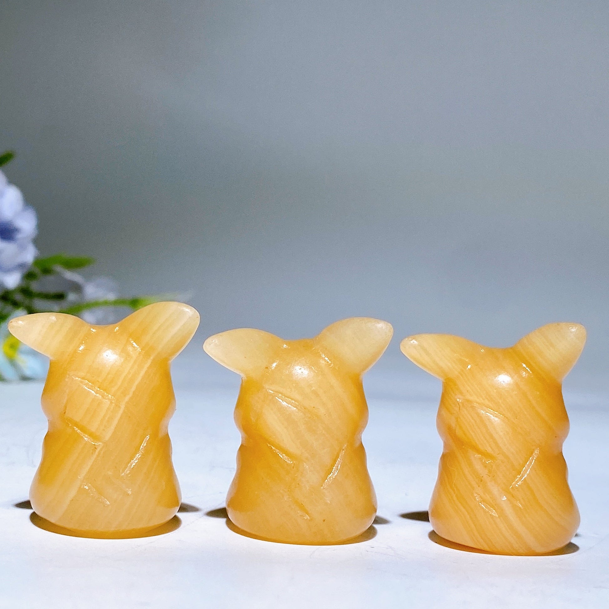 1.4" Orange Calcite Pikachu Pokemon Carving Crystal Healing Bulk Wholesale