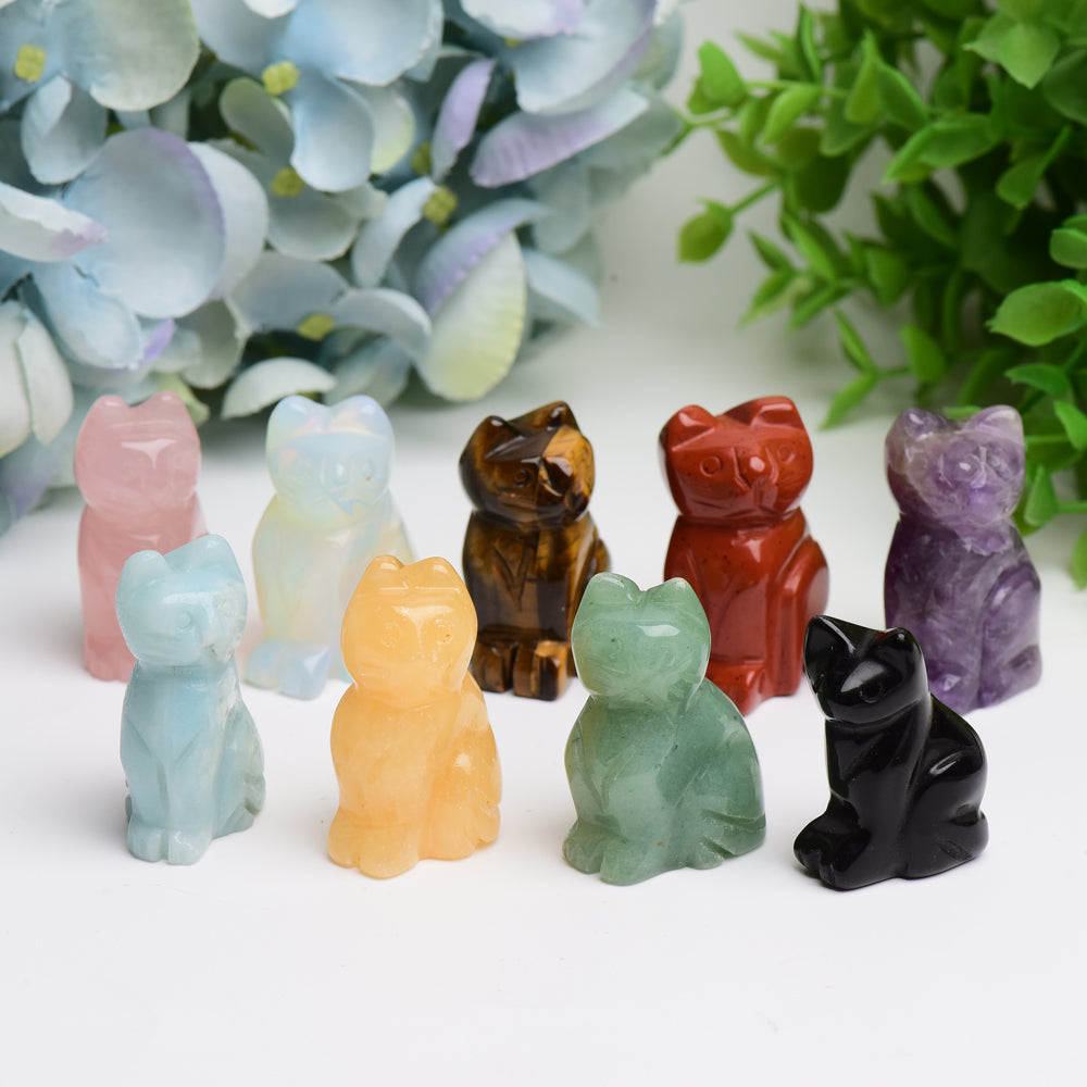 1.5" Mixed Crystal Cat Animal Crystal Carving Wholesale Crystals