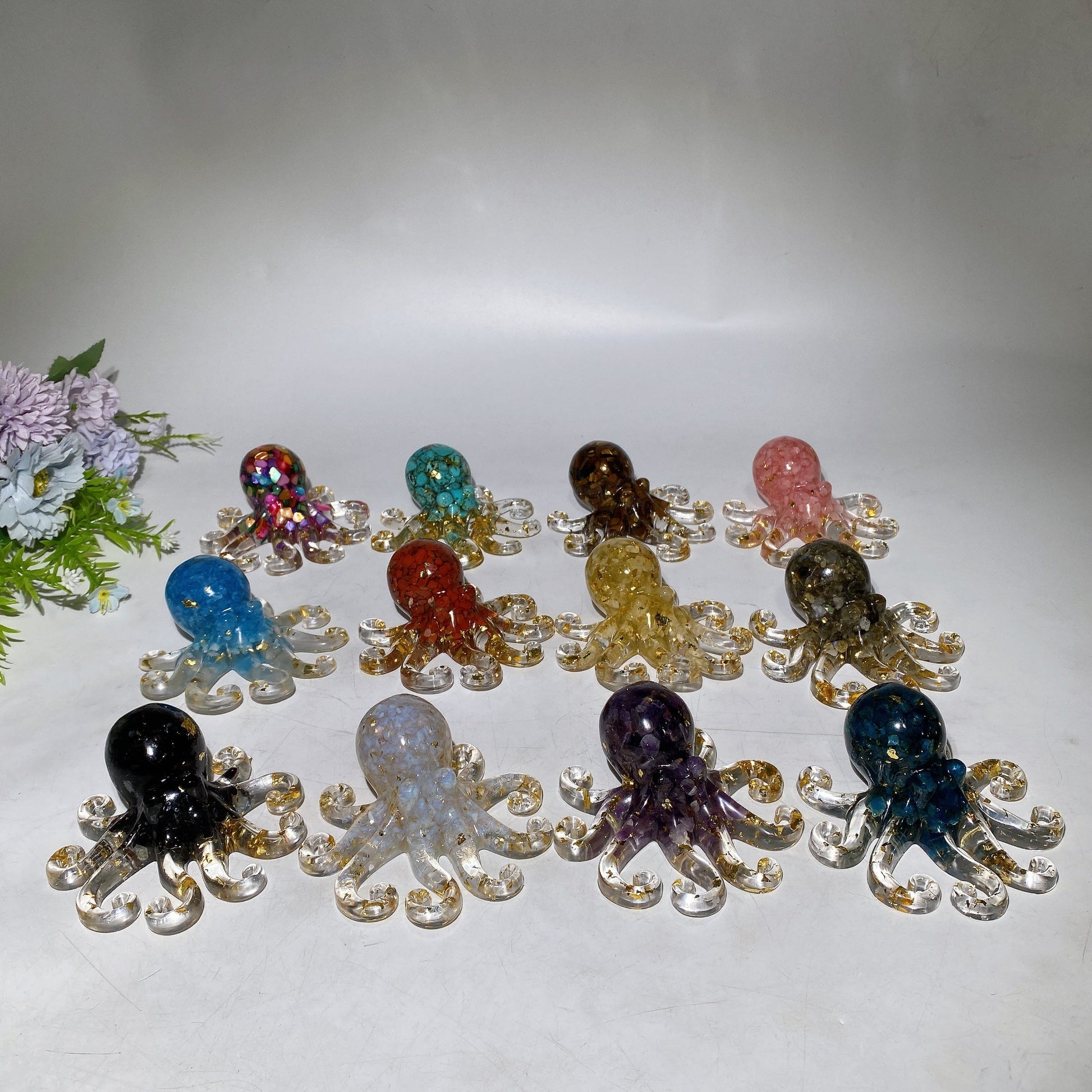 10cm Crystal Chips Infused Resin Octopus Carving Crystal Healing Bulk Wholesale