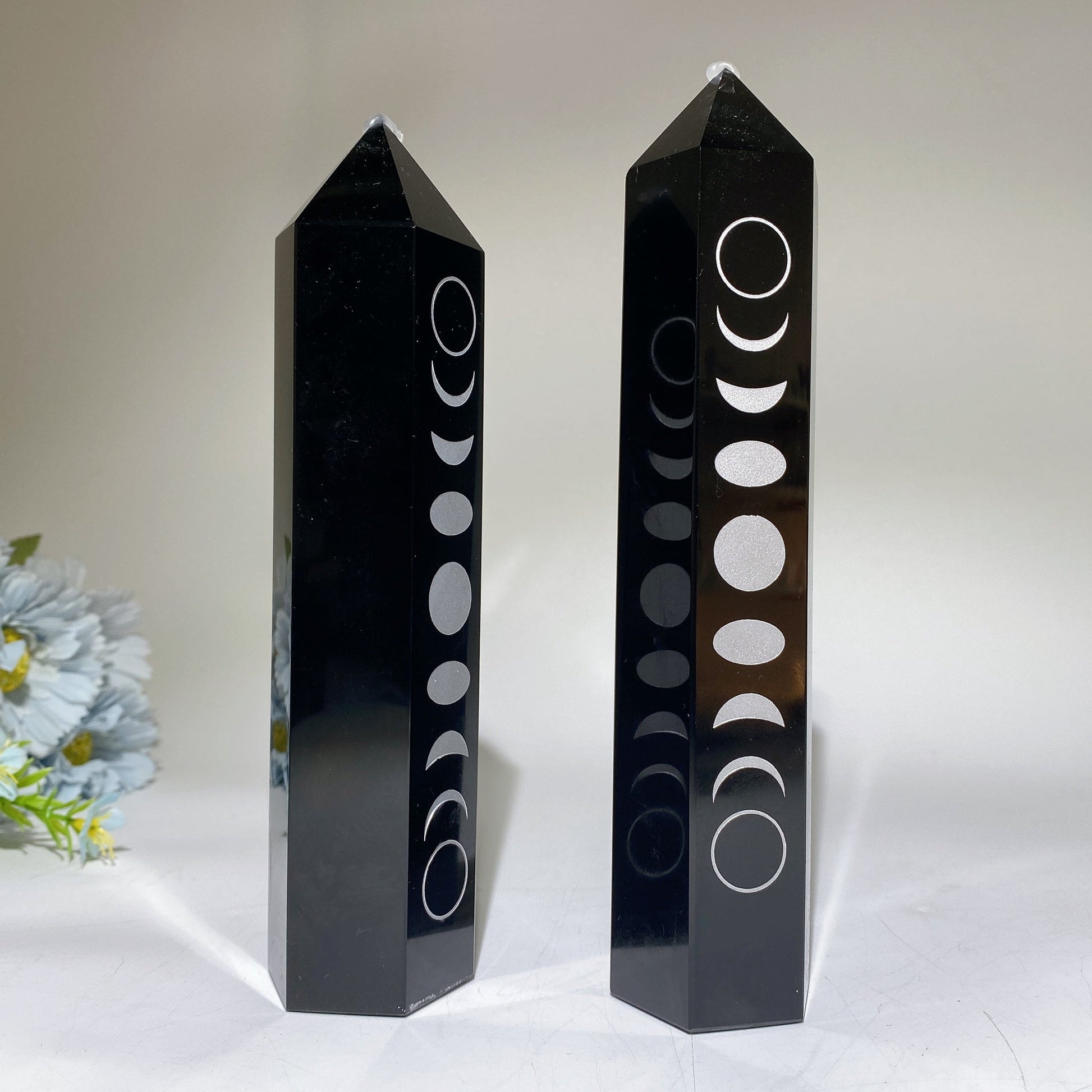 19-21cm Black Obsidian Tower with Silver Printing Moon Crystal Healing Bulk Wholesale