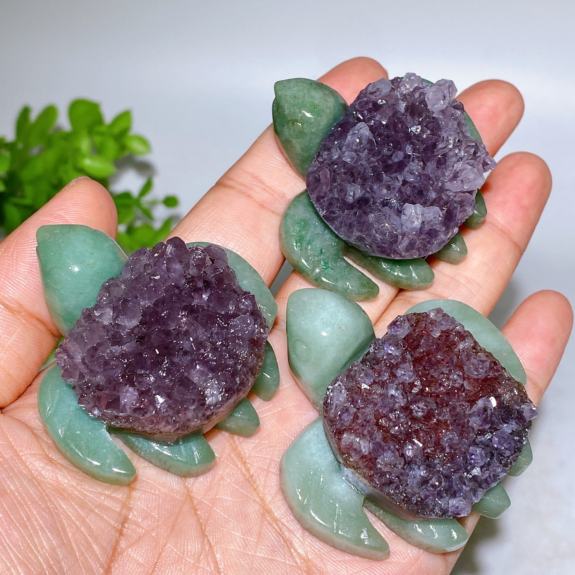 2.0" Amethyst Cluster Green Aventurine Turtle Carving Crystal Healing Bulk Wholesale