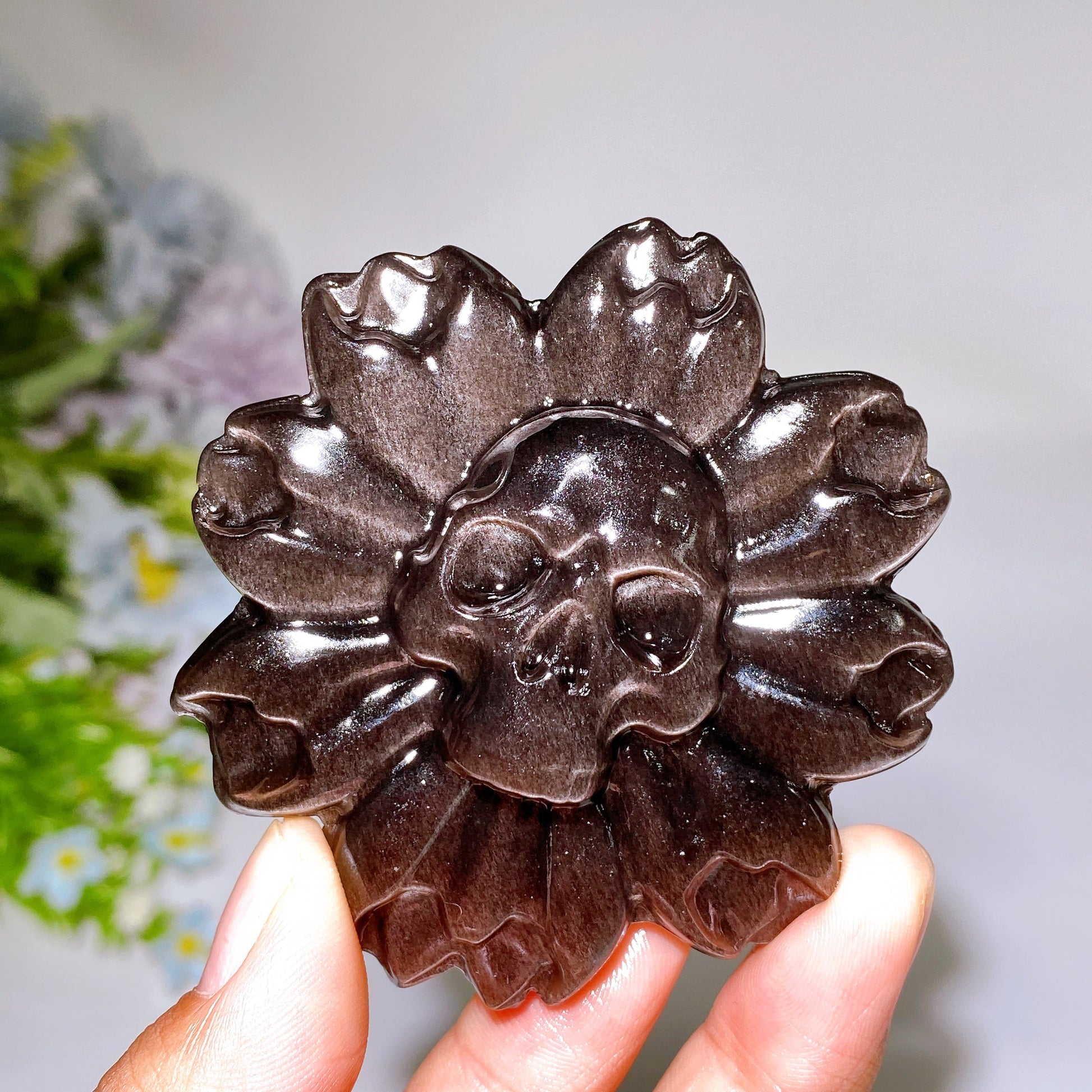 2.6" Silver Obsidian Skull Flower Carving Crystal Healing Bulk Wholesale