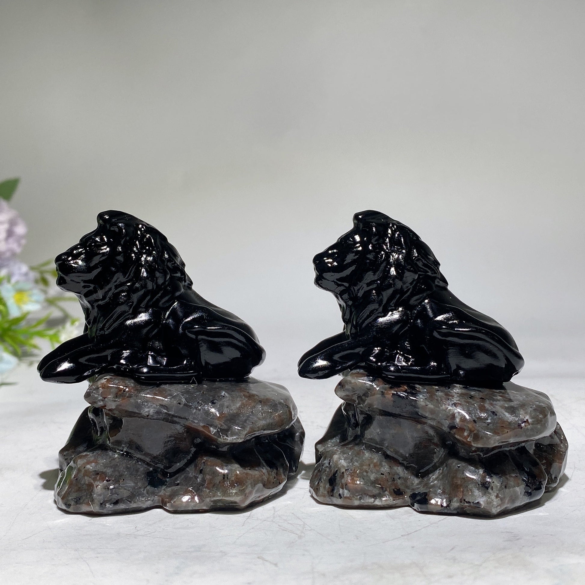 2.7" Black Obsidian Lion on Yooperlite Carving Crystal Healing Bulk Wholesale