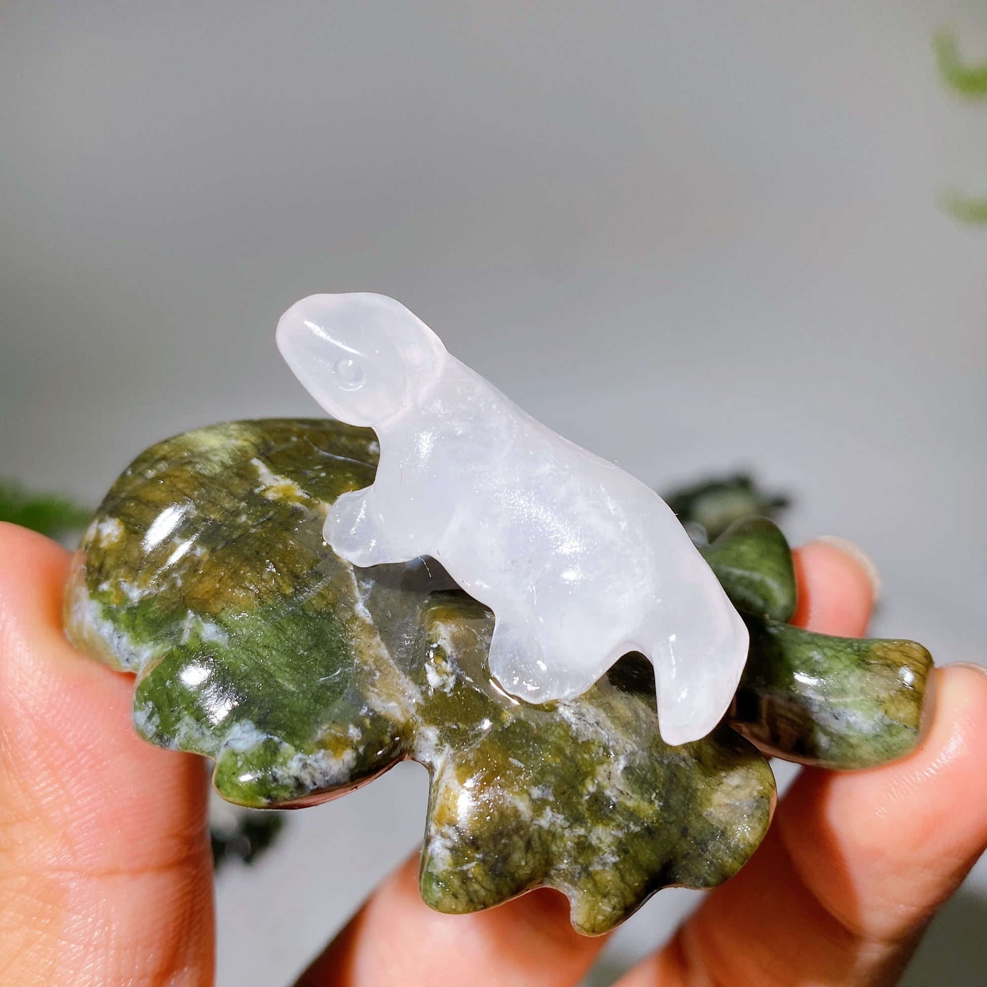 2.7" Crystal Dinosaur on Leaf Carving Crystal Healing Bulk Wholesale
