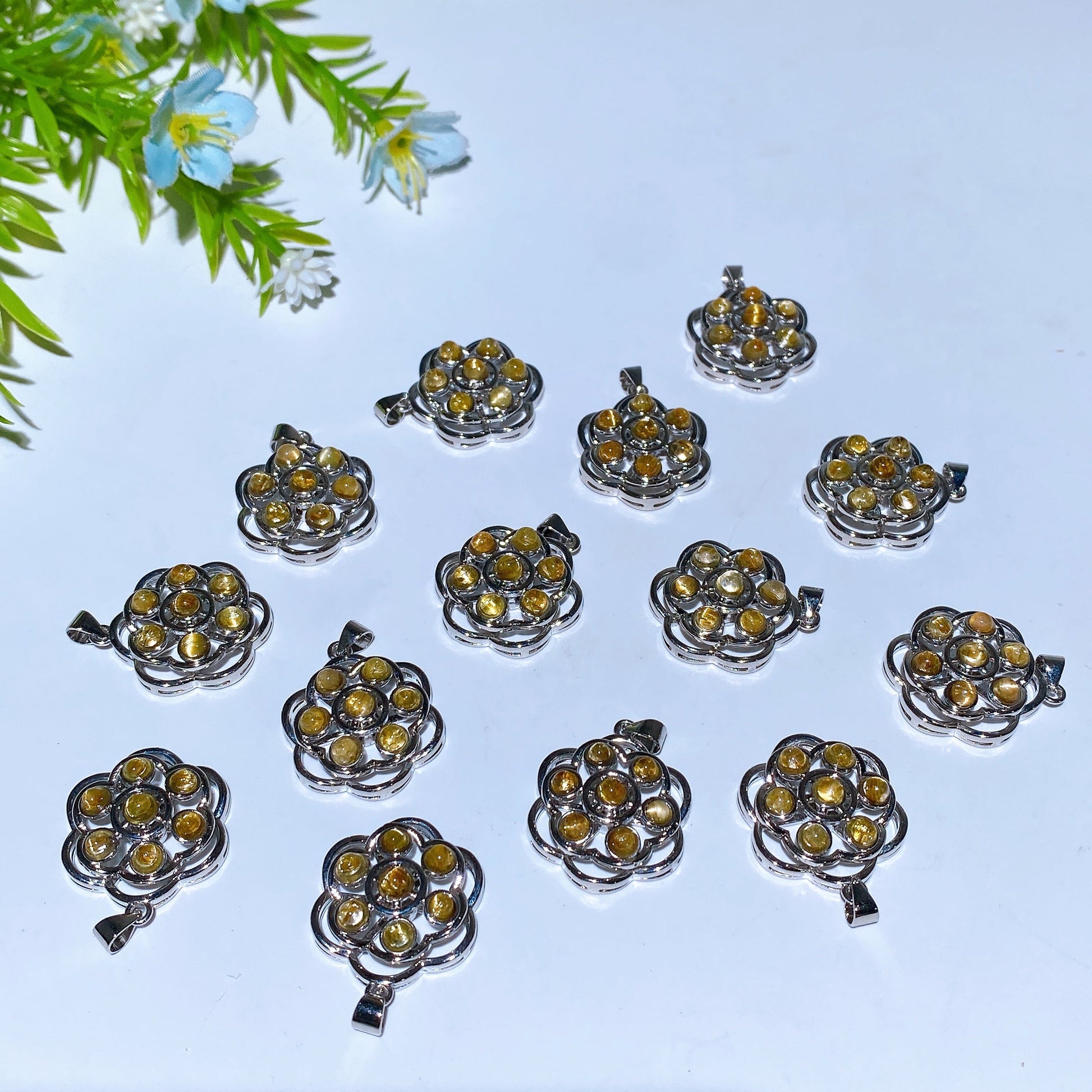 20mm Golden Rutialted Quartz Labradorite Amethyst Spin Flower Pendant Crystal healing Bulk Wholesale
