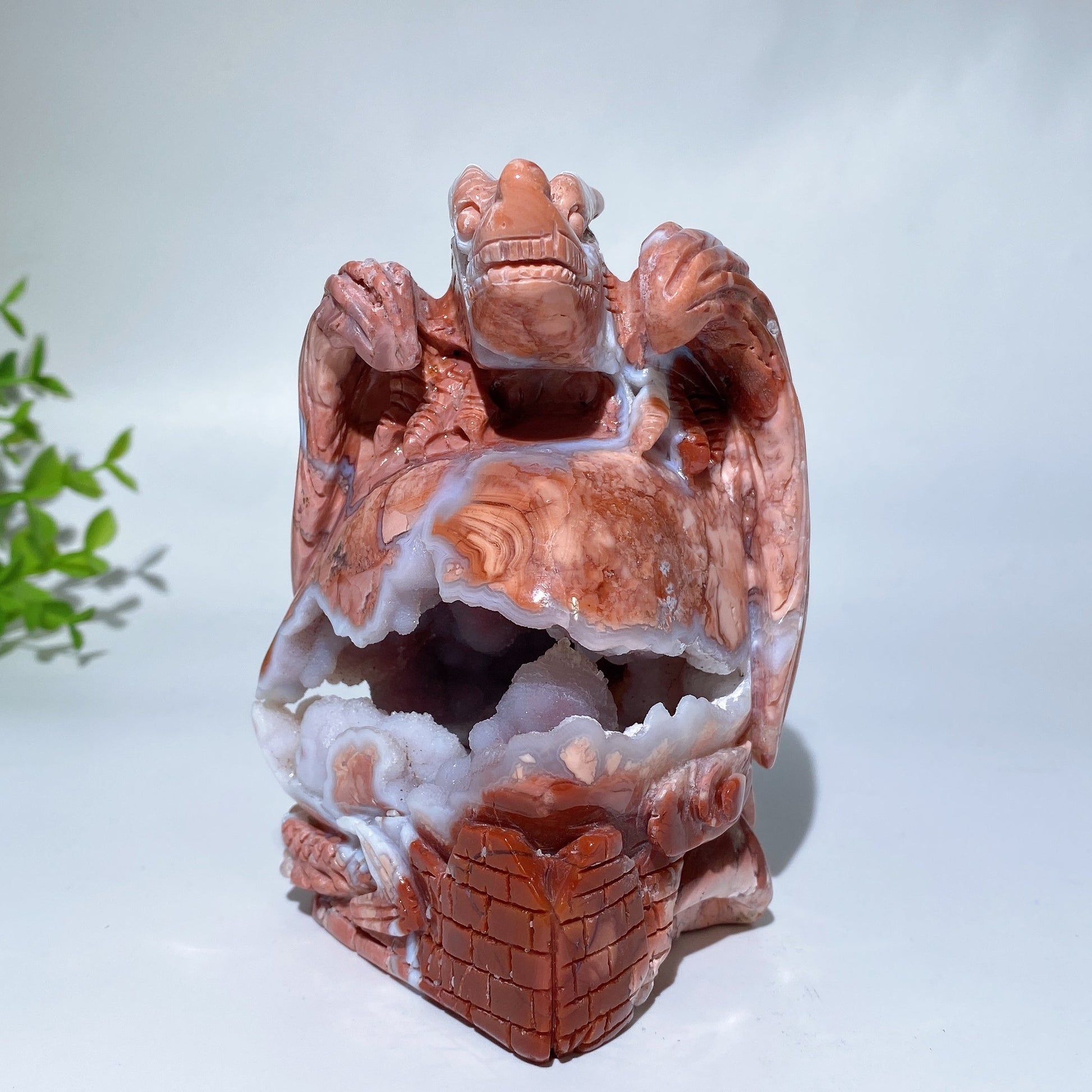 4.7" Unique Druzy Cotton Candy Agate Dragon Carving Crystal Healing Bulk Wholesale