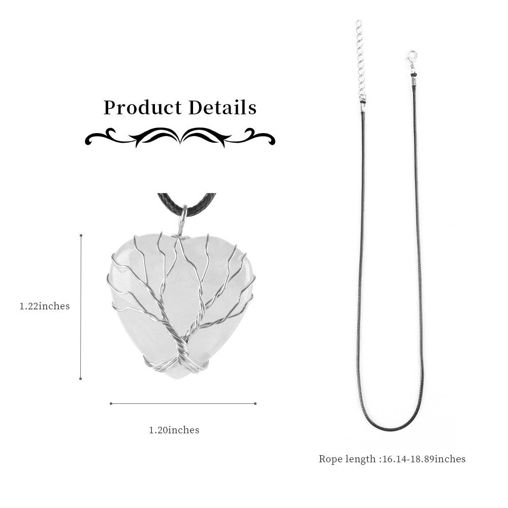 Silver Tree Of Life Wire Wrapped Heart Shape Stone Pendant Wholesale Crystals